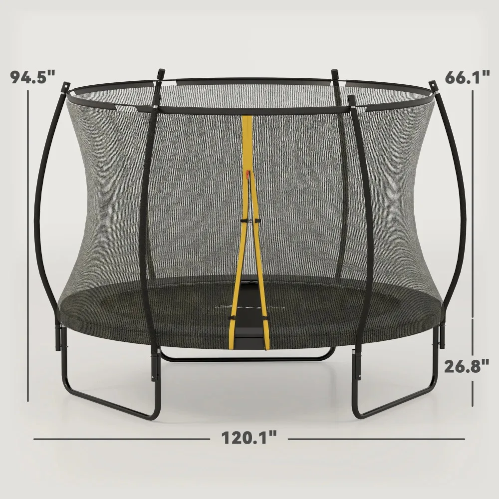 • Enhanced Safety Features: This outdoor trampoline with net is designed with safe padding, innovative curved poles, and an enclosure net to minimize injuries during play