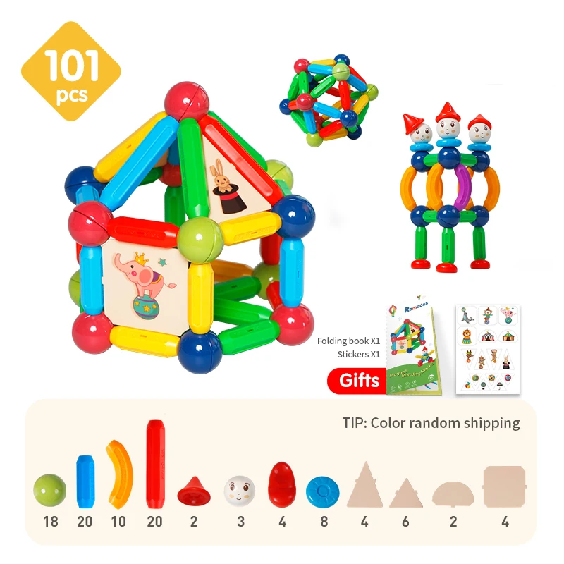 Romboss 10/26/48/78/101pcs Magnetic Constructor Blocks Set Magnet Rods Montessori Educational Building Toys Kids Christmas Gifts