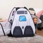 EASY ASSEMBLY & PORTABLE: The rocket ship tent is Sets up in minutes with included sturdy poles and connectors. Lightweight design makes it easy to move, fold, and store when playtime is over.