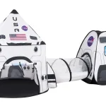 COMPLETE 3-PIECE SPACE SET: Includes a graphically-designed rocket ship tent, a crawl-through tunnel, and a bonus cube tent—all crafted from durable, water-resistant polyester for indoor/outdoor use.
