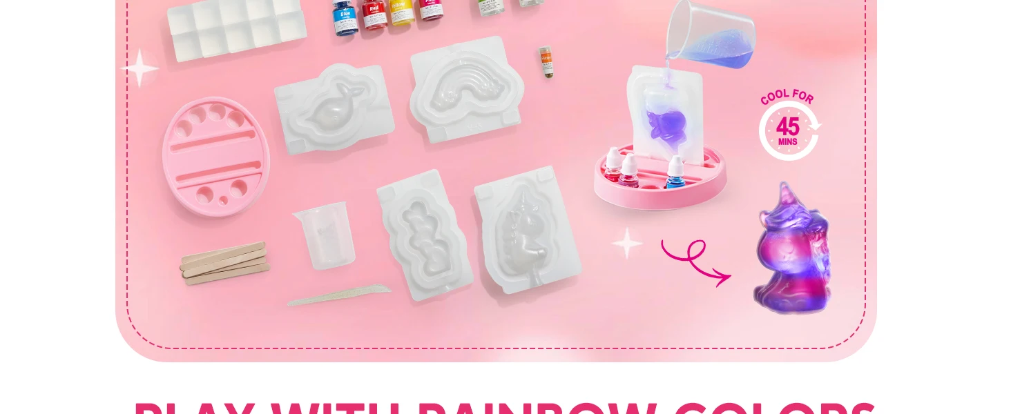 MAGICAL SOAP-MAKING ADVENTURE: Dive into the world of unicorns and rainbows with this exciting soap-making kit! Melt and blend the soap base with vibrant colors, delightful fragrances, and glitter to create multi-colored, scented soaps in the shapes of a charming unicorn, a dazzling unicorn narwhal, a heart-layered column and a bright rainbow.