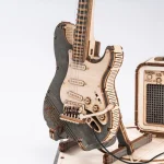 Robotime-ROKR Electric Guitar Model 3D wooden puzzle TG605K is a well-designed wooden electric guitar model that can build with your own hands. With fine details and nice proportions, this mini exquisitely crafted guitar model will be a great gift for any music lover.