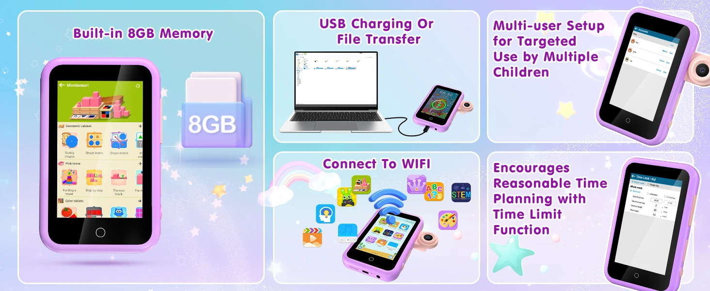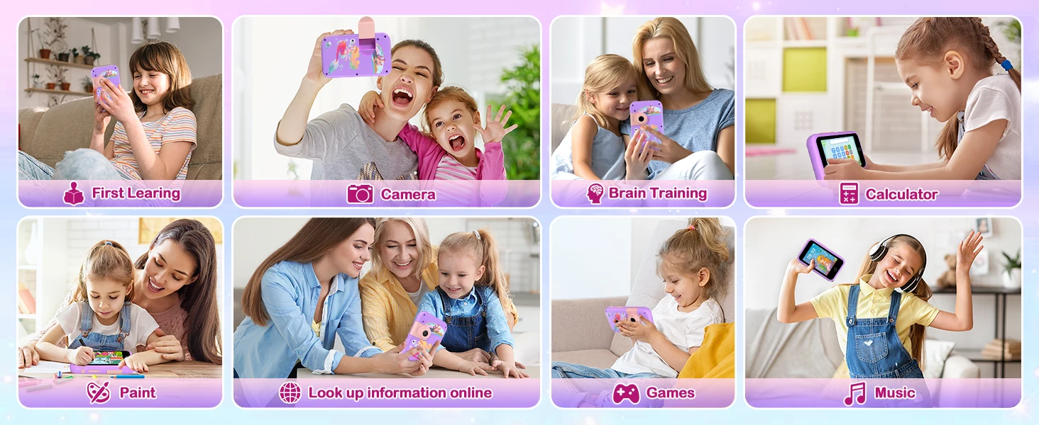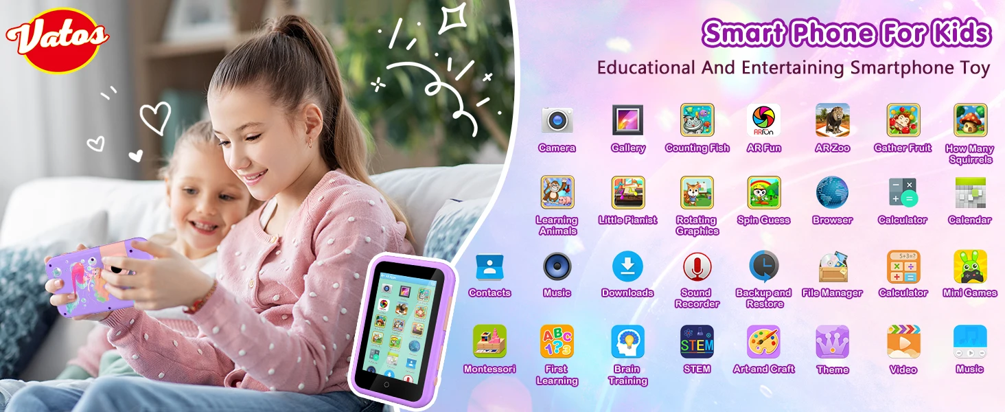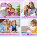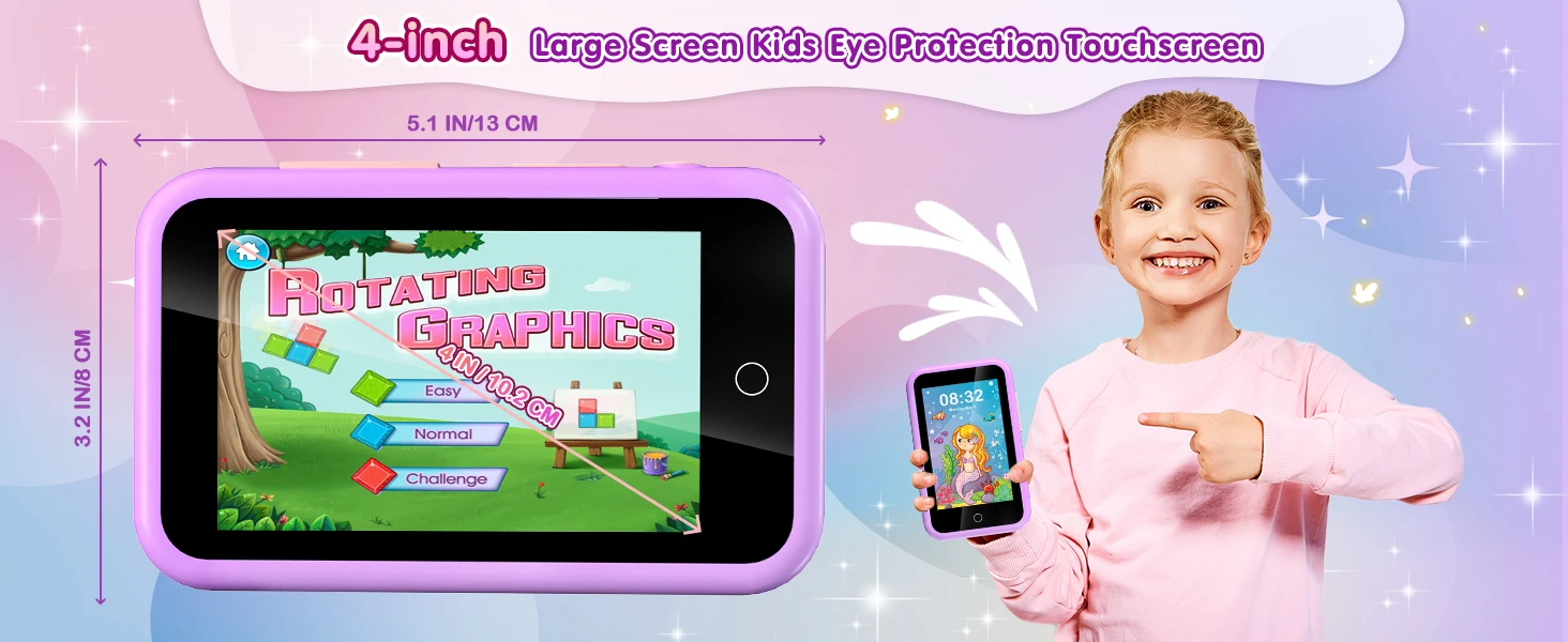 4” Large Screen & Dual Camera – This kids smart phone has a 4-inch large touch screen that protects children's eyes and ensures a good visual experience. Whether it is learning courses or playing games, it can be displayed clearly. The kids smartphone supports dual cameras for taking photos and videos. By moving the camera forward and backward, kids can quickly switch between the front and rear cameras, allowing them to capture life's beautiful moments anytime.